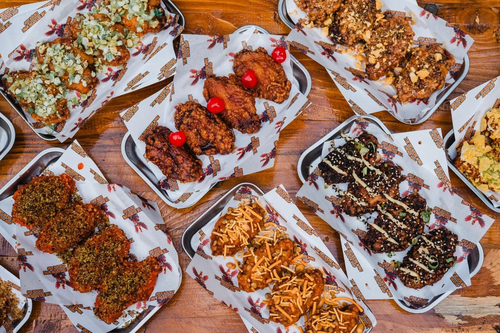8 to 48 wing platters, mix-and-match flavours, all come with fries.